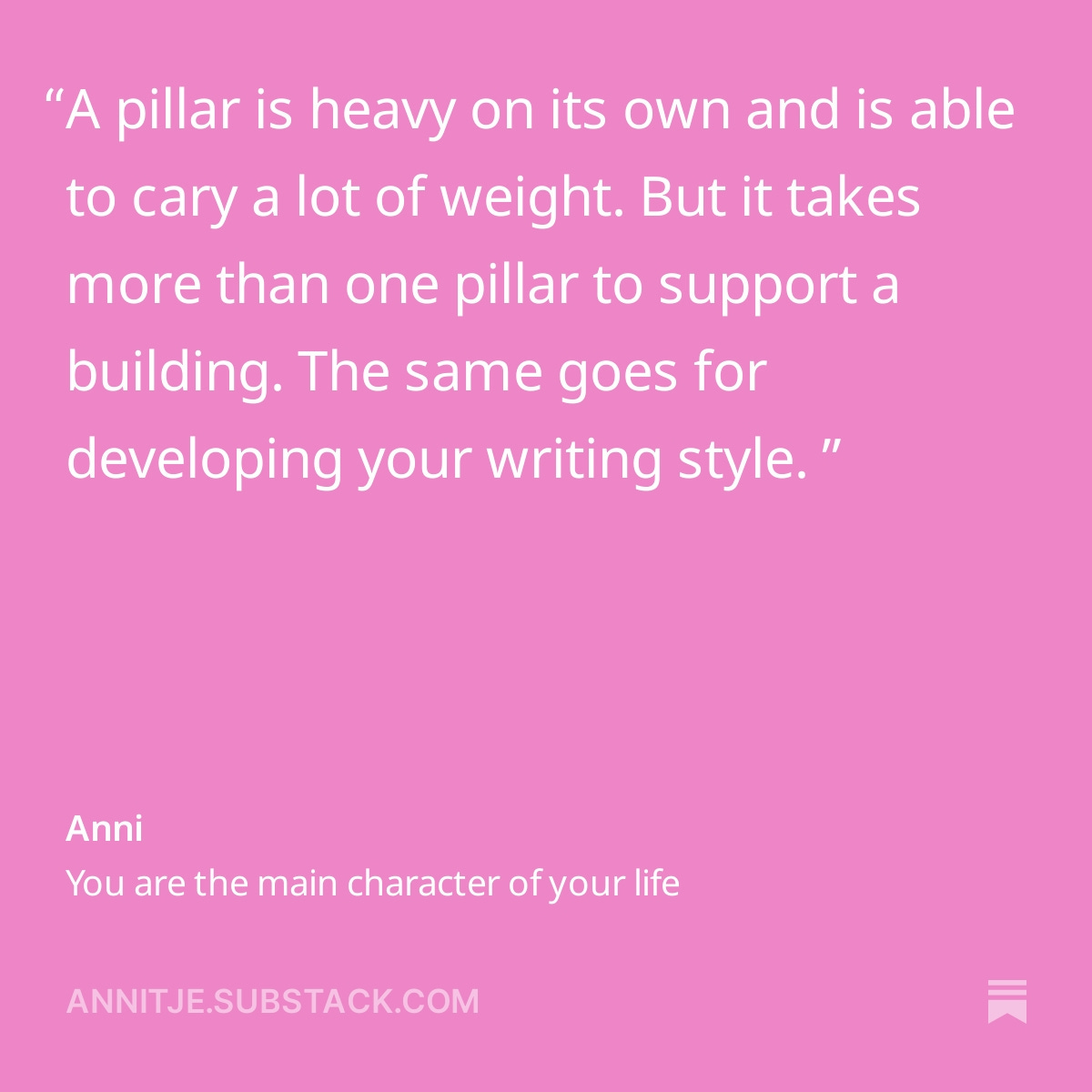 Hmm. I had to think about this question before replying to it. In case you just subscribed and wonder what these pillars are about. To give a little recap: rediscovering your writing style all starts with the definition of terms!