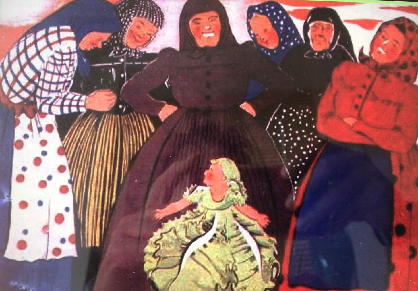 At the market a group of women, all wearing traditional Hungarian dresses and headcovers stood around Sara. Overhearing them speak about her and the asking price, Sára interrupted and shouted stubbornly to them: